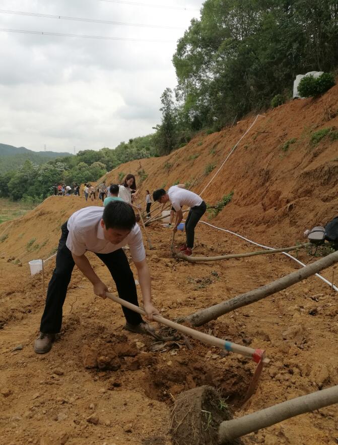 在寶安羅田森林公園植樹造林現場,紅旗飄揚、橫幅高掛,大家頂著炎炎烈日,手拿鋤頭樹苗,揮鋤挖土,移栽樹苗,一起動手綠化自己的家園。大家三五成群,相互協作,從挖坑整地,栽植樹苗,到扶正壓實,各道工序一絲不茍,整個植樹現場呈現一派熱火朝天的勞動景象。經過兩個多小時熱烈有序的植樹勞動,共栽植木苗近百株,羅田森林公園山地上又新添一抹亮麗的新綠。大家看著那一片自己親手種下的樹苗在微風中搖曳,無一不露出幸福的笑容。