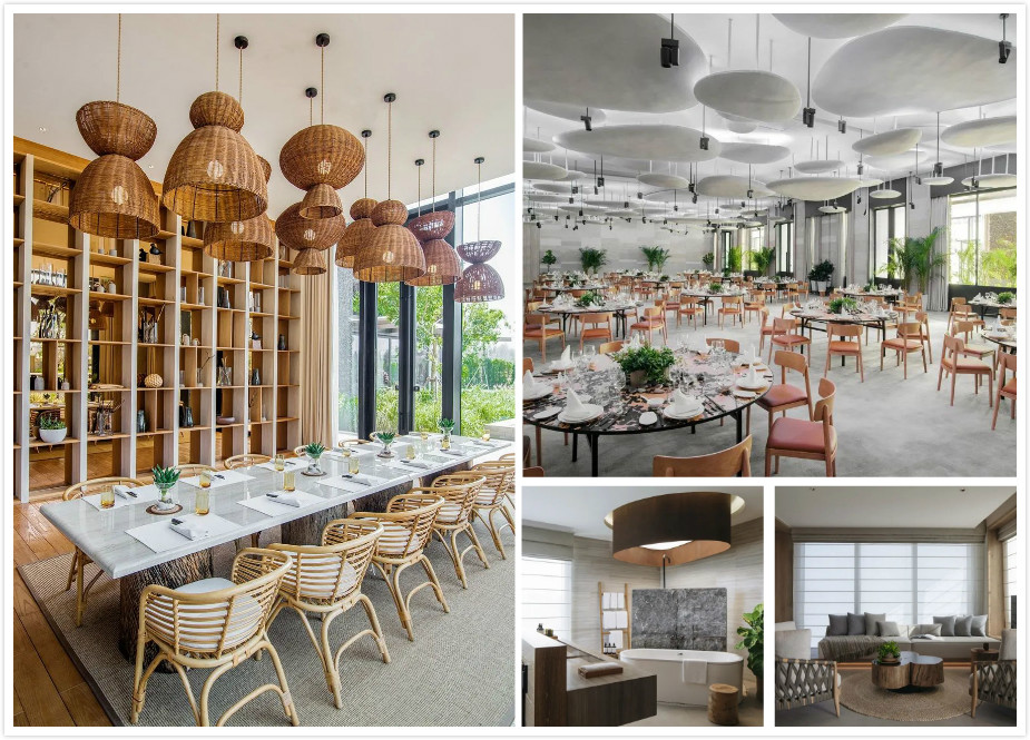 三亞海棠灣陽光壹酒店1 Hotel擁有294間面積達62至1,300平方米的客房、套房及復式別墅。回歸自然、簡約原始的設計風格,巧妙搭配多種未經(jīng)拋光的當?shù)靥烊皇暮湍静?,打造渾厚多元的紋理及細膩和諧的配色,輔以原木打造的凳子、書桌、藤編地毯、融進自然的定制藝術品以及有機棉裝飾等,純粹而時尚。